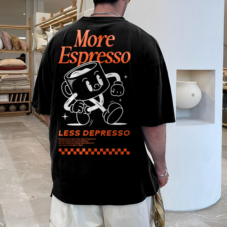 More Espresso Less Depresso Printed T-shirt(Double-sided Print)