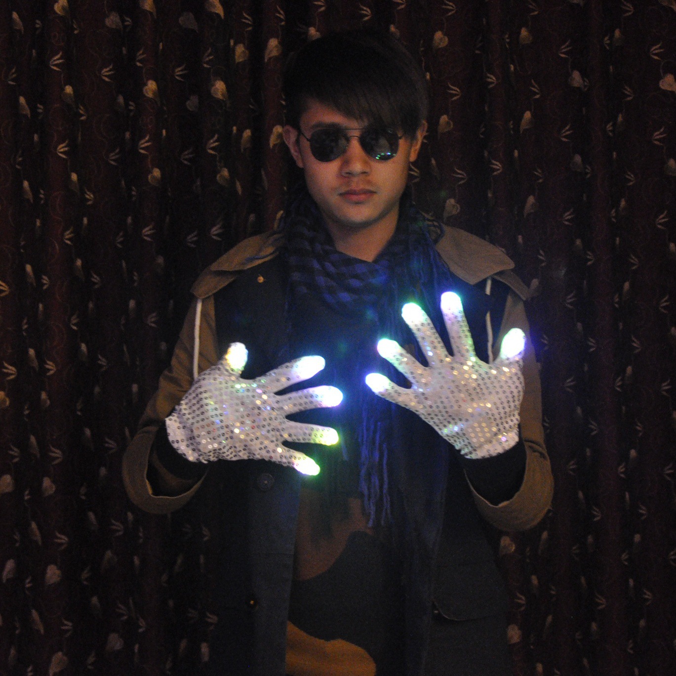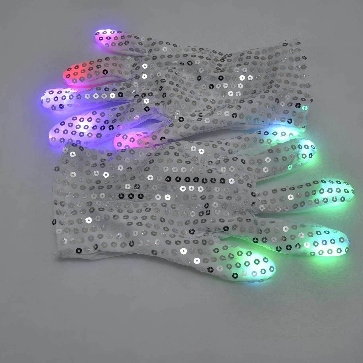 MJ Adult LED Night-Light Glowing Silver Sequin Gloves Performance Props