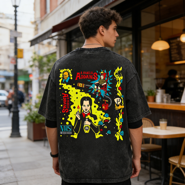 The Addams Family Vhs Printed Men's Washed Tee