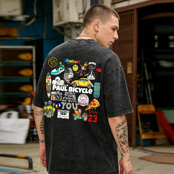 .Abstract Paul Bicycle May The Force Be With You Printed Men's Washed Tee