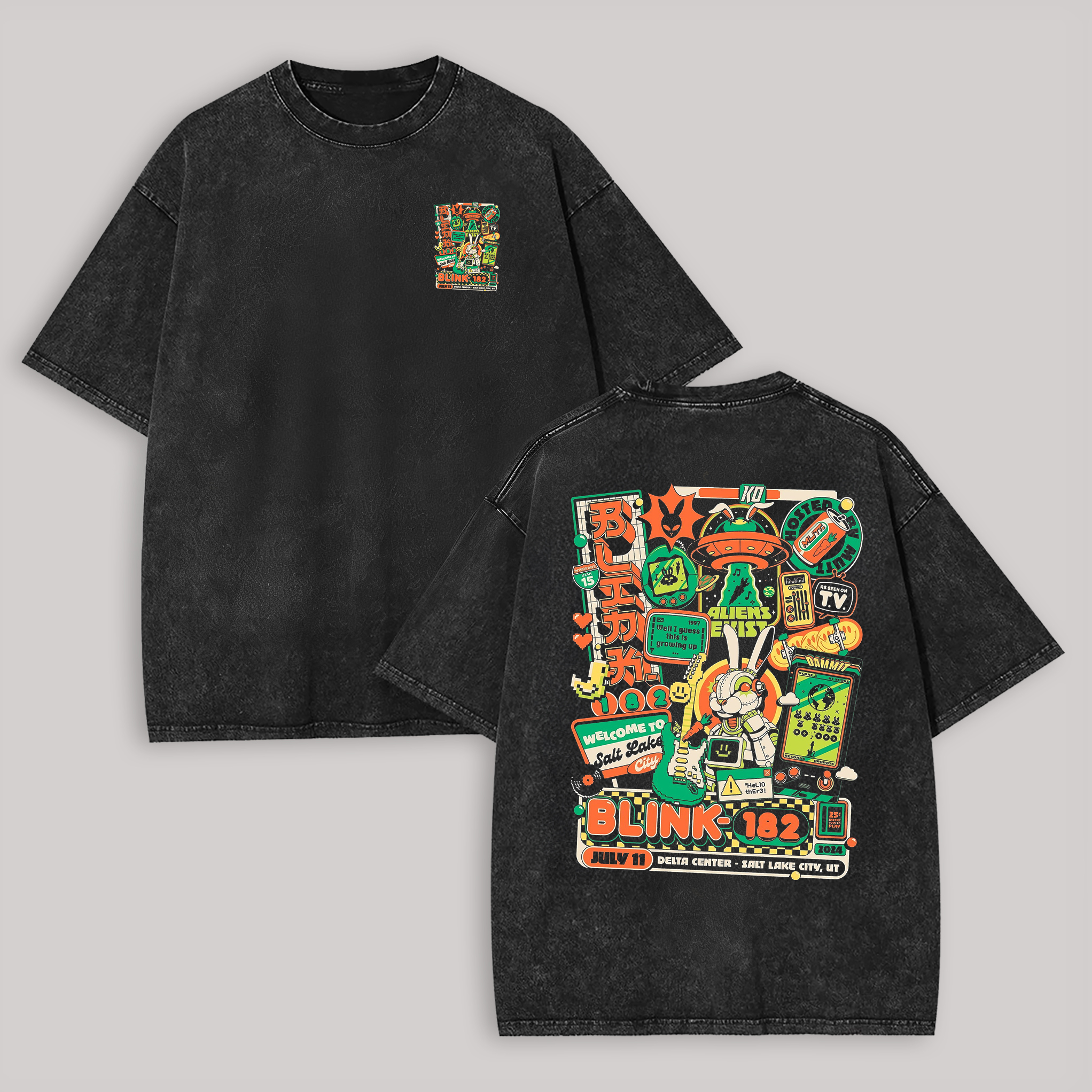 Blink 182 Welcome To Salt Lake City July 11 Printed Men's Washed Tee