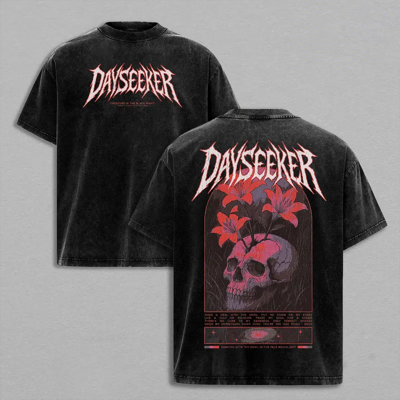 Dancing With The Devil ‘til The Full Moon’s Out Printed Men's Washed Tee