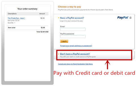 1. Make sure the "Don't have a PayPal account?" option is selected
