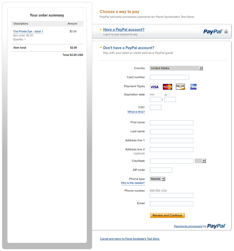 Paying at PayPal without a PayPal account