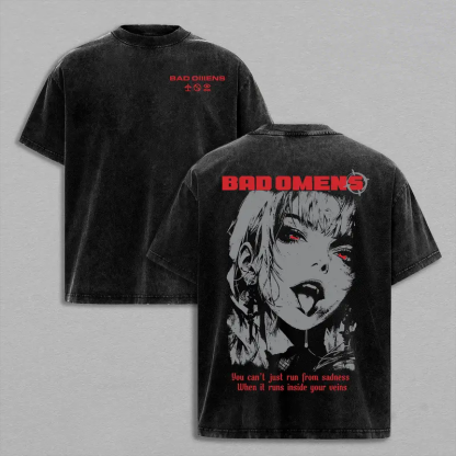 Bad Omens You Can’t Just Run From Sadness When It Runs Inside Your Veins Printed Men's Washed Tee