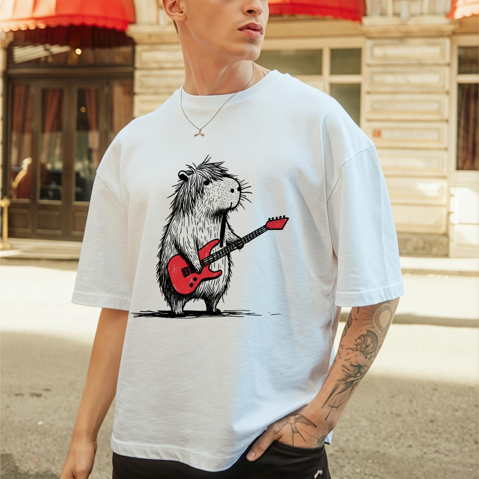Capybara Guitarist Printed Men's T-shirt