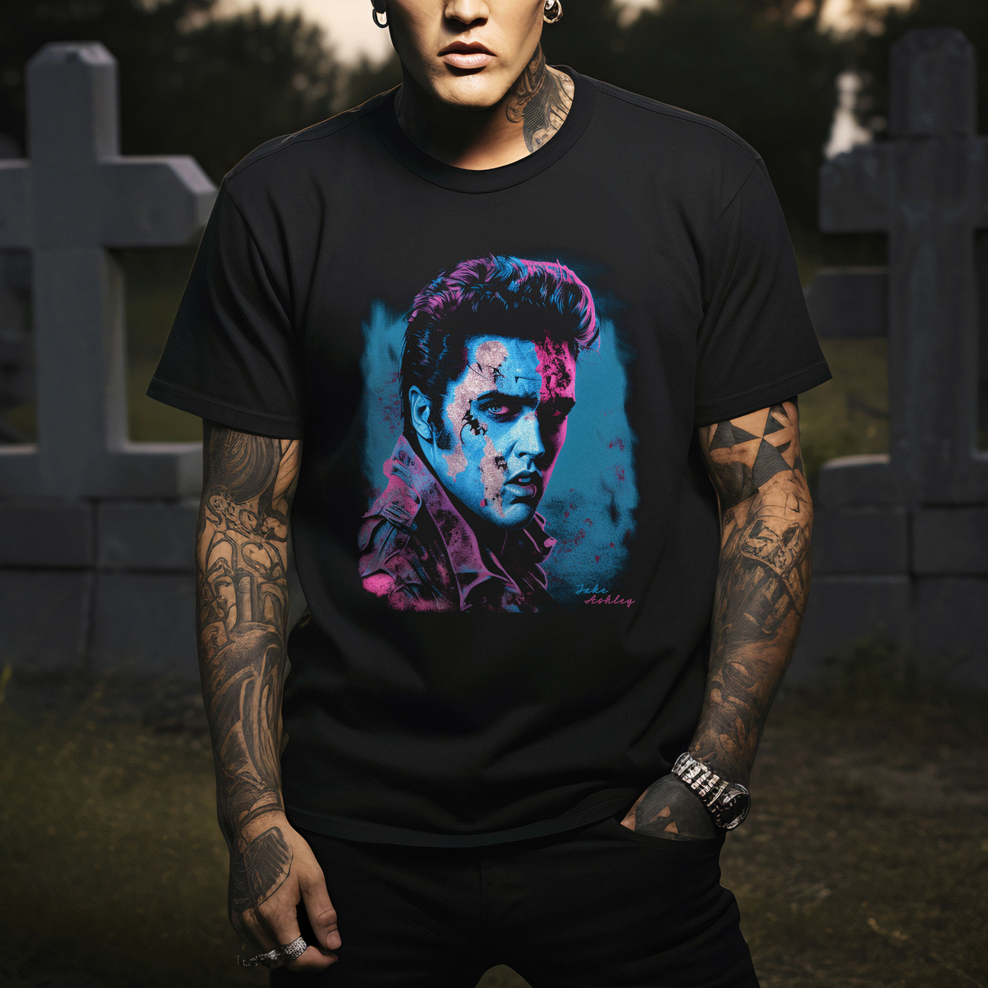 Elvis Presley Cyberpunk Zombie Printed Men's T-shirt