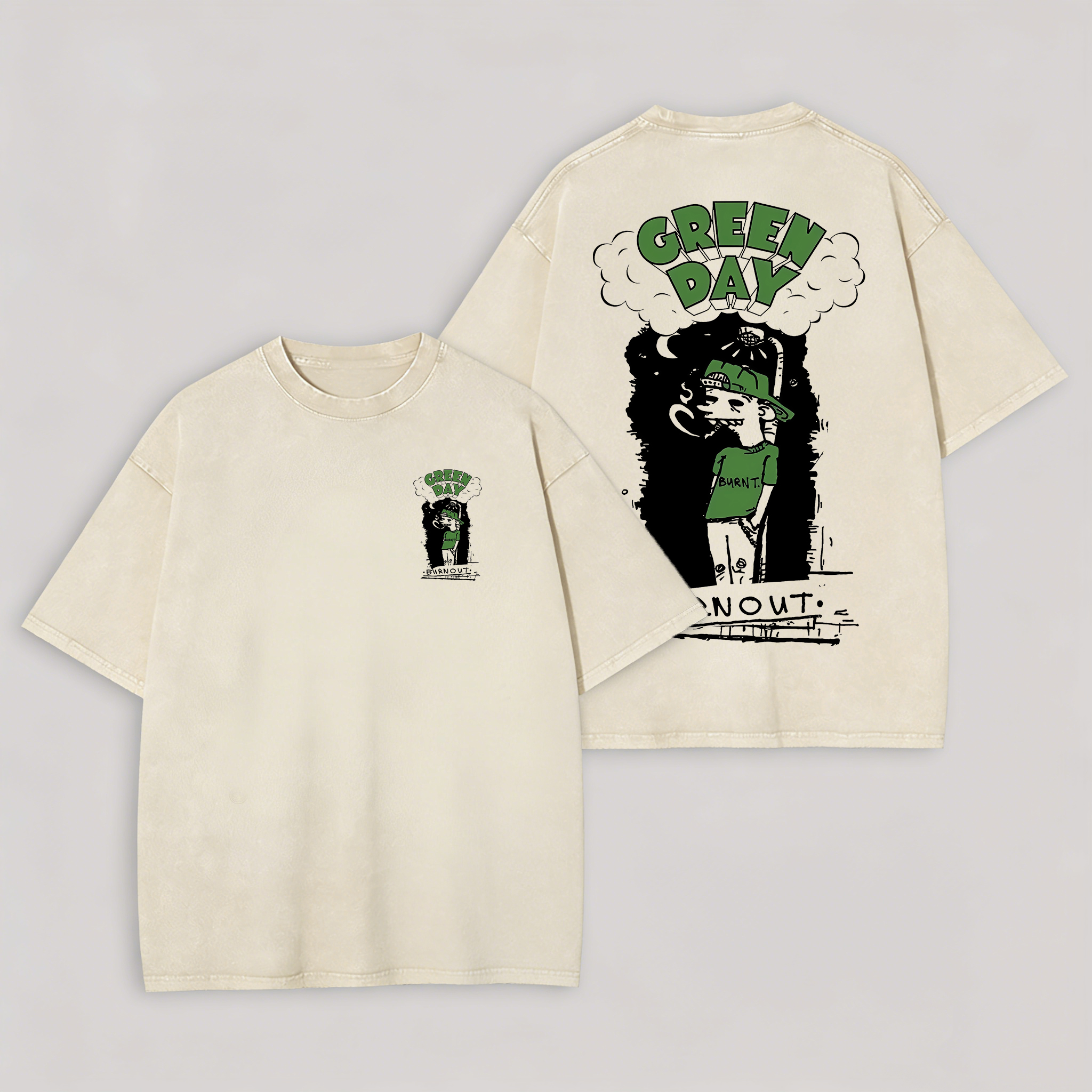 Green Day Burn Out Printed Men's Washed Tee