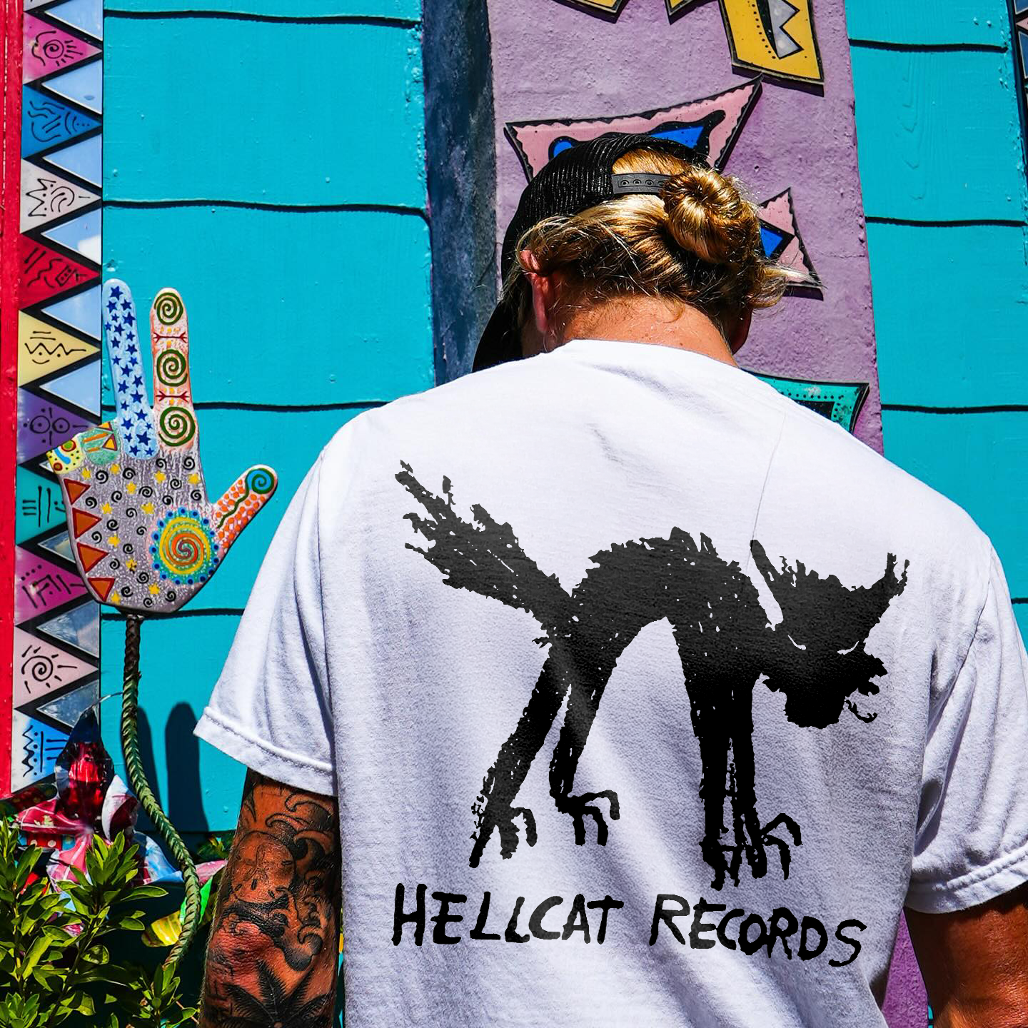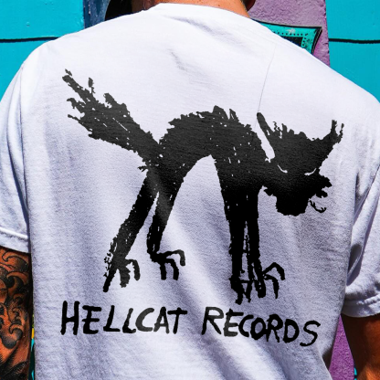 Hellcat Records Fierce Black Cat Art Printed Men's T-shirt
