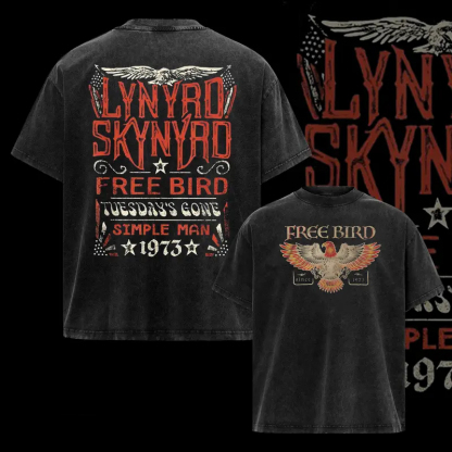 Lynyrd Skynyrd Free Bird Tuesday's Gone Simple Man 1973 Printed Men's Washed Tee