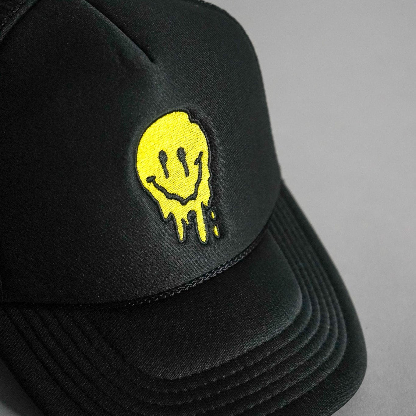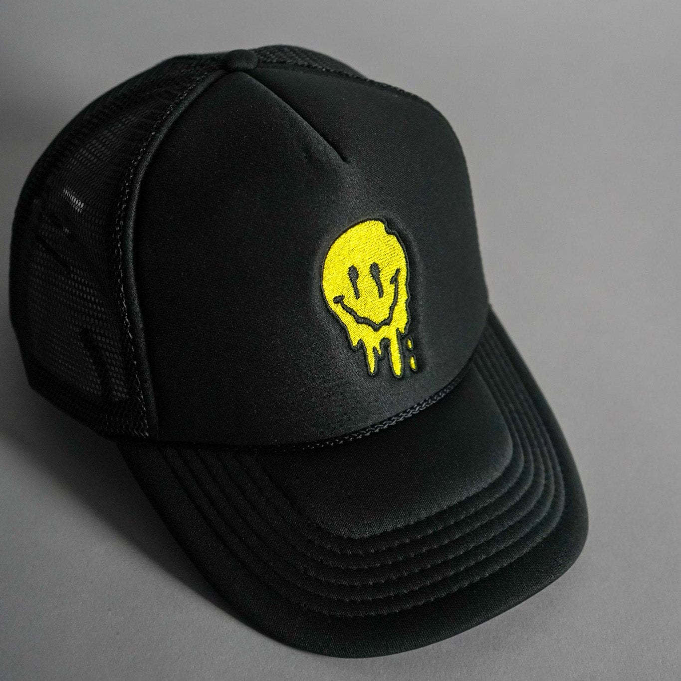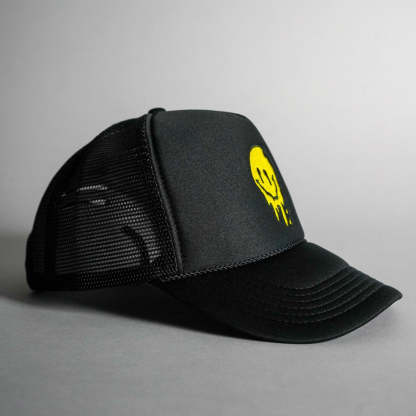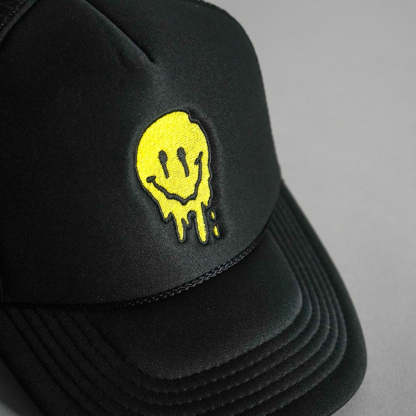 Melted Smiley Face Trucker Hat - Black