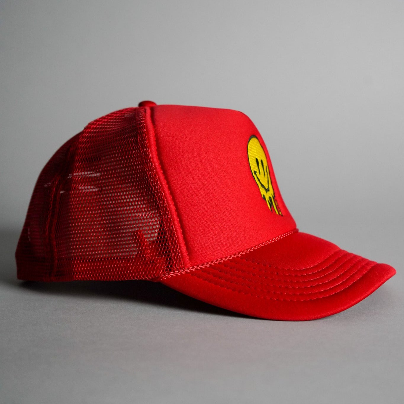 Melted Smiley Face Trucker Hat - Red