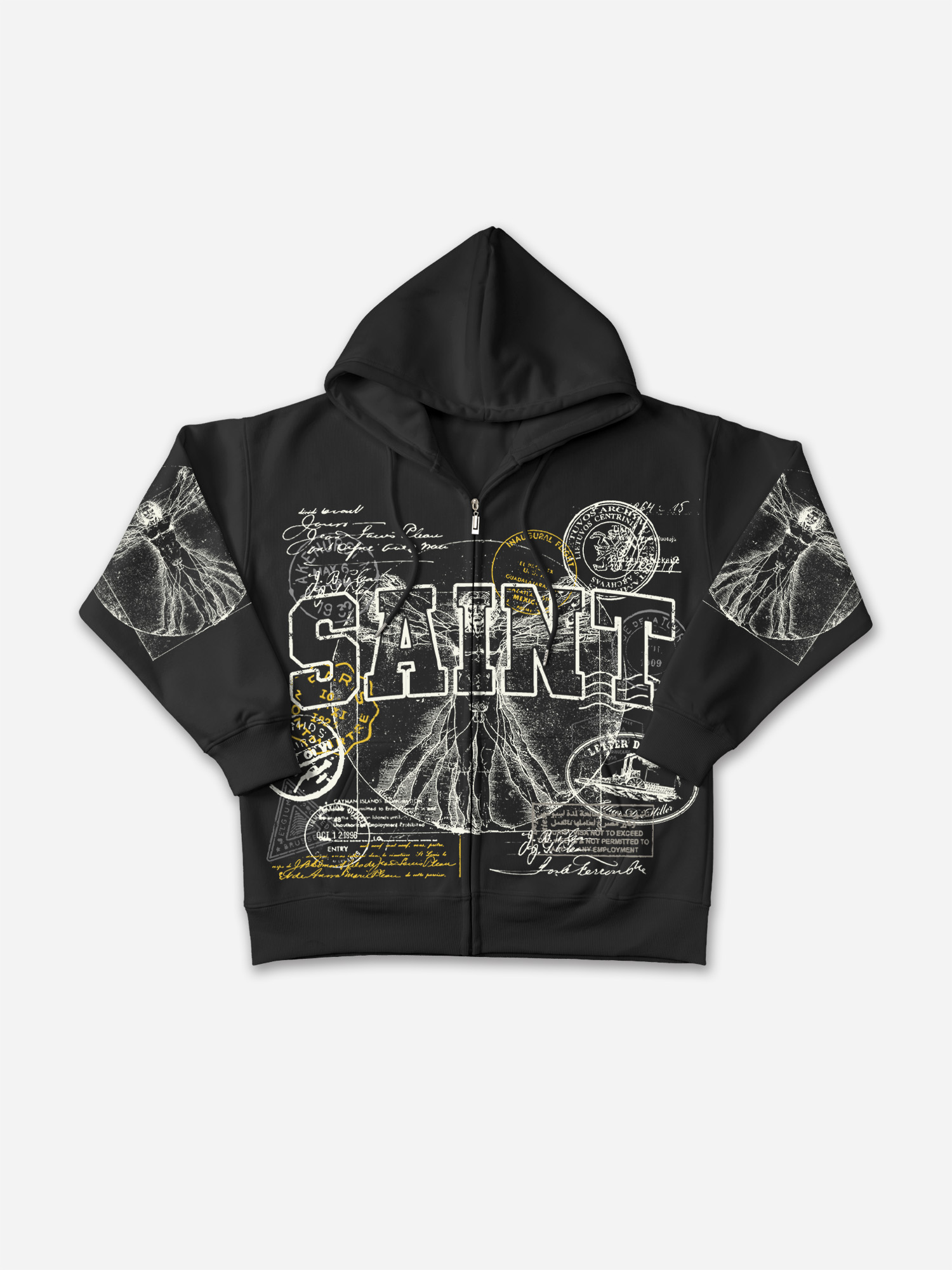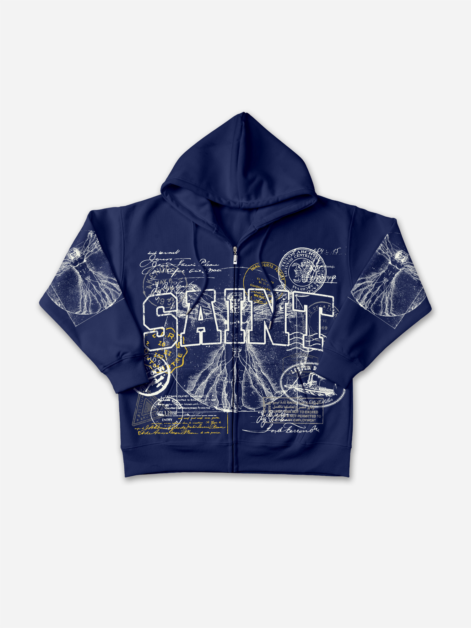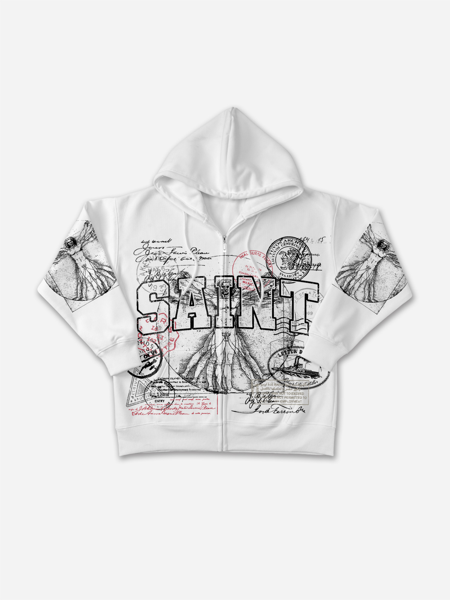 Saints Vitruvian Man Vintage Art Graphic Zip-Up Hoodie