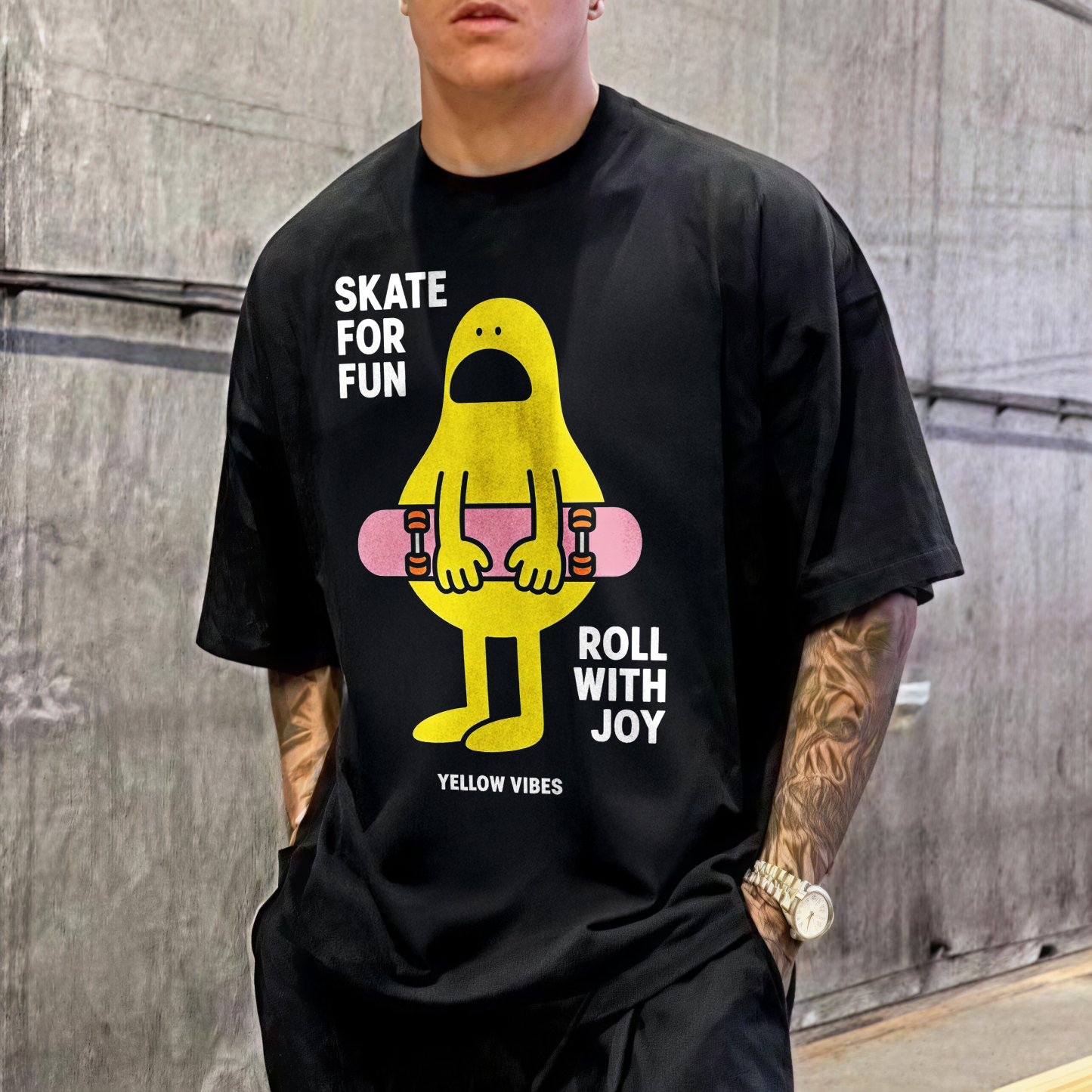 Skate For Fun Roll With Joy Yellow Vibes Printed Men's T-shirt
