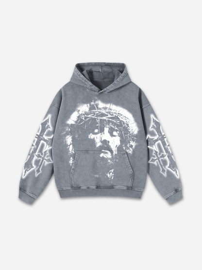 Vintage Jesus Print Graphic Acid Washed Oversized Hoodie